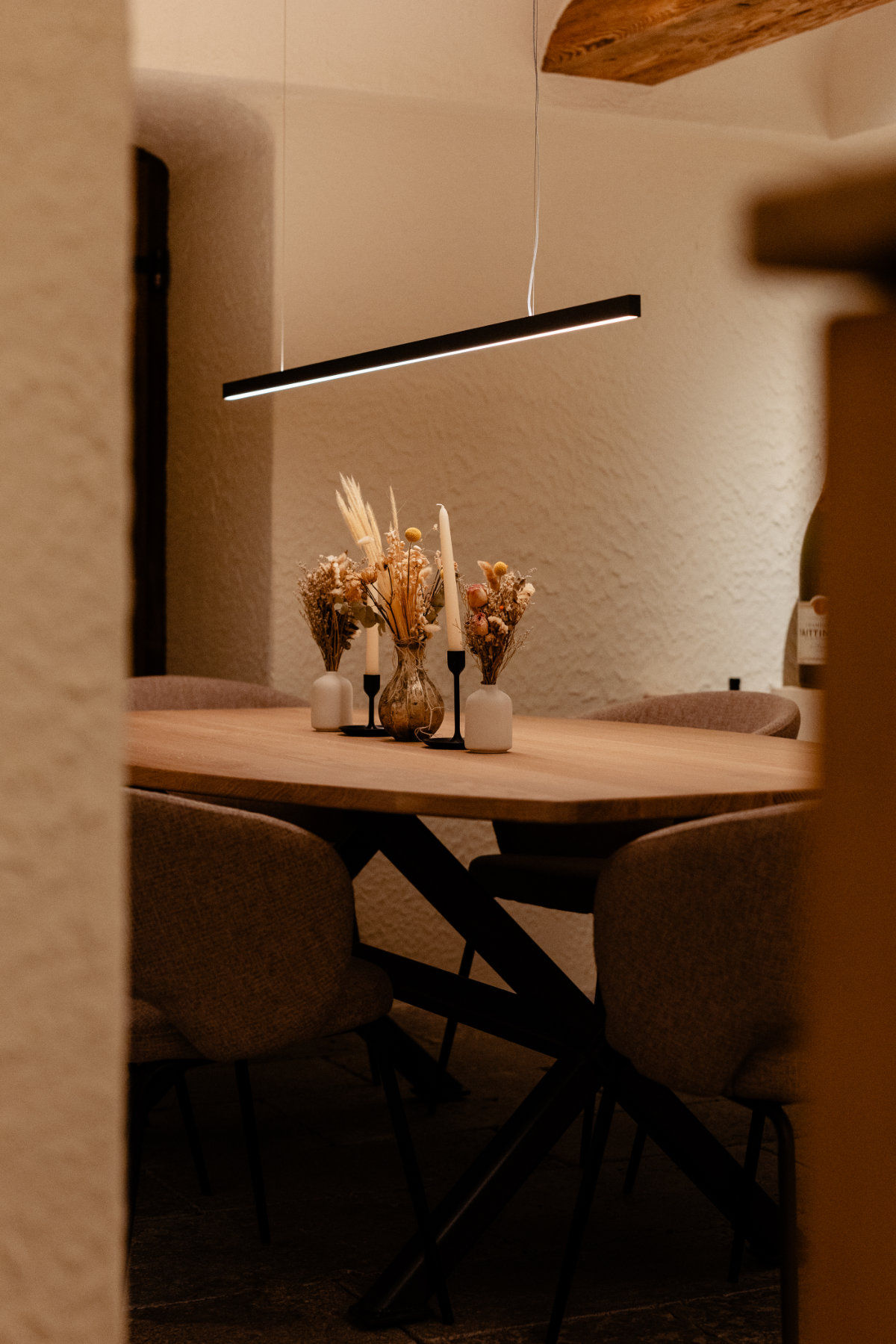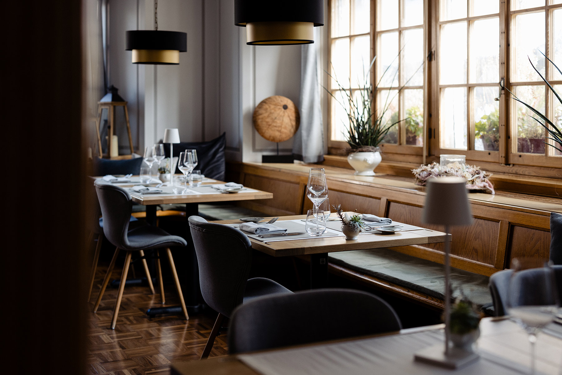 Willkommen in unserer modernisierten Gaststube! Seit der Übernahme haben wir das Farb- und Materialkonzept kontinuierlich verfeinert. So entstand eine harmonische Verbindung zwischen den stilvollen Akzenten der Gegenwart und der charaktervollen Architektur der 1930er-Jahre.