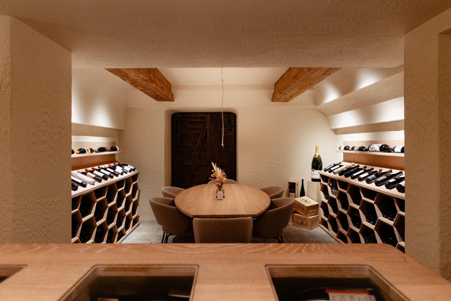 In unserem frisch renovierten Weinkeller erwartet Sie ein ganz besonderes Ambiente für Ihren Apéro oder ein geselliges Beisammensein mit Freunden. Unser Weinsortiment ist über die Jahre stetig gewachsen – wir beraten Sie gerne persönlich, um den passenden Tropfen für Sie zu finden.